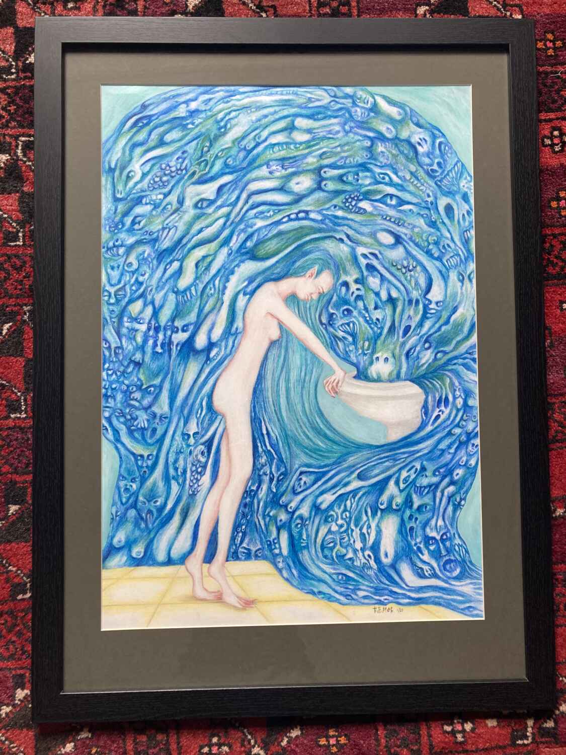 Framed but contact for unframed price. Glass is plexi-glass. Framed size is 75cm x 55 cm