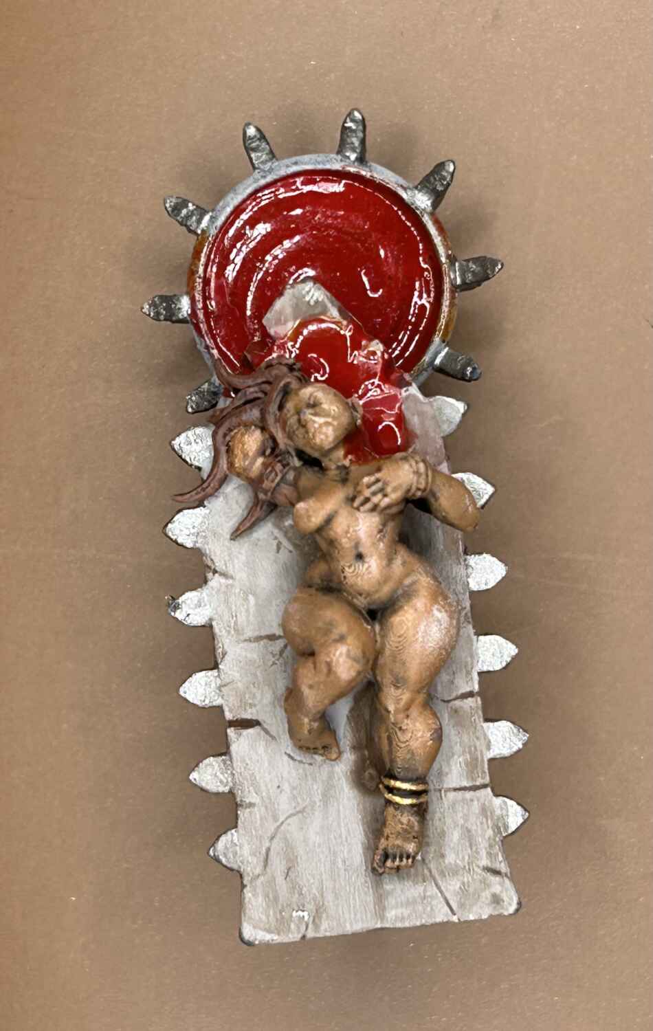 Fully painted naked lady sacrifice laying on an altar. With sacrificial blood bowl to go with. I use a special technique to make the blood look still wet.