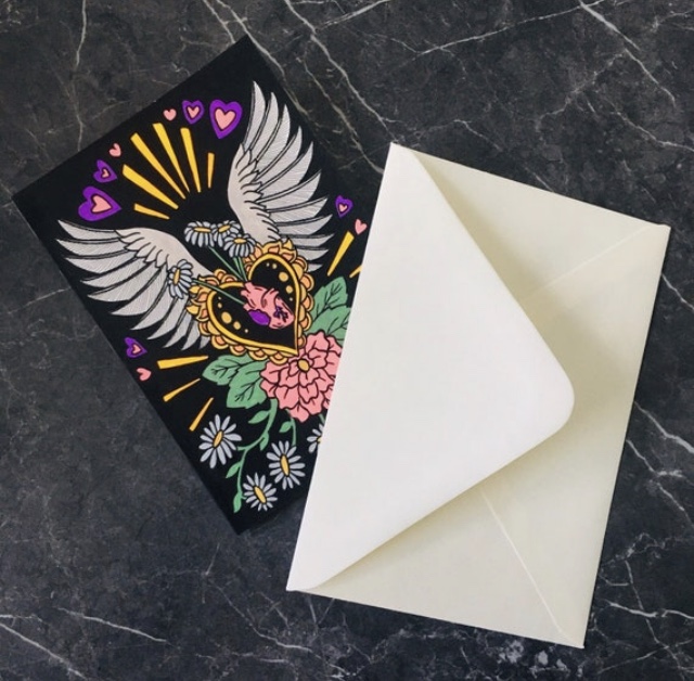 A handmade greeting card featuring my Sweetheart design